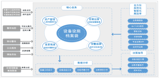 设施设备全生命周期管理系统通过引进先进的设备资产管理思想,以通过资产管理、运维管理、监控预警、数据分析、管理考核等手段,对设备设施的分布情况、运行故障情况、设备选型、运维质量进行总体分析评估,实现合理安排设备采购、维修保养计划及相关资源与活动, 真正实现管理的自动化、智能化、及时性、高效性,从而提高资产利用率、降低交通设施运维成本。